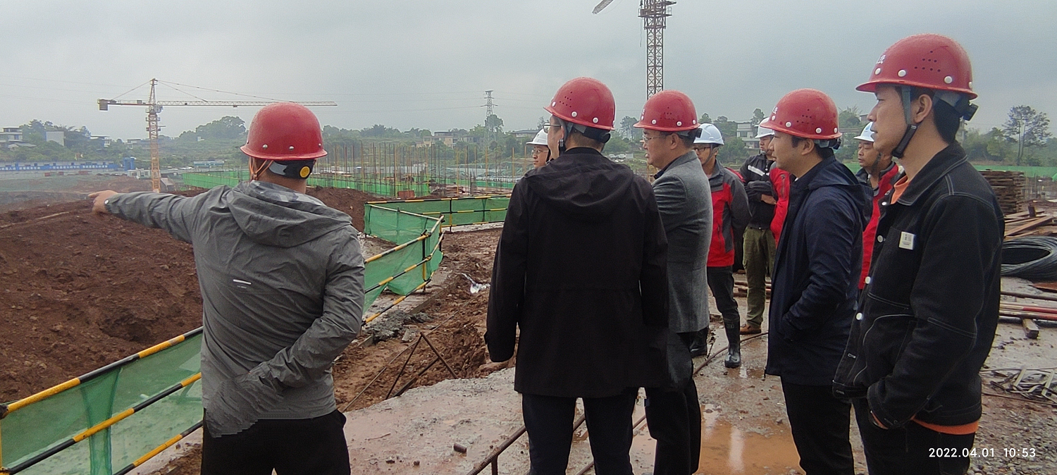 2022 年 4 月 1 日上午, 江北公司陳目科董事長帶隊視察 江北連接線、 江北文化綜合體項目、 學(xué)府家園等項目建設(shè)情況。