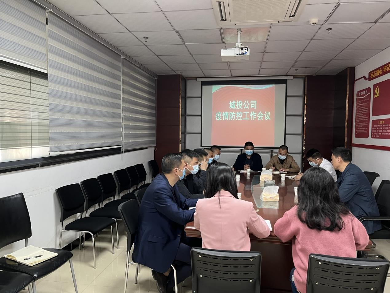 2022 年 4 月 8 日早上, 城投公司組織召開疫情防控工作 會議, 會議由董事長鞠志良主持, 公司各部門及下屬子公司 中層干部參會。