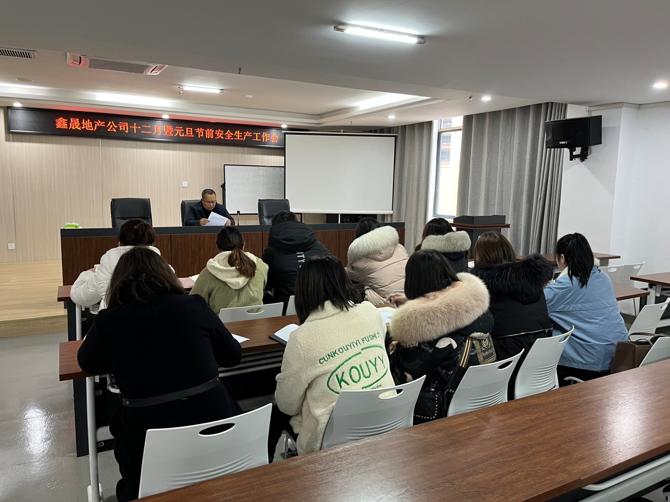 2021年12月27日,瀘州鑫晟房地產(chǎn)開(kāi)發(fā)有限公司組織召開(kāi)十二月暨元旦節(jié)前安全生產(chǎn)工作會(huì),會(huì)議由董事長(zhǎng)任東財(cái)主持,公司全體員工參加。