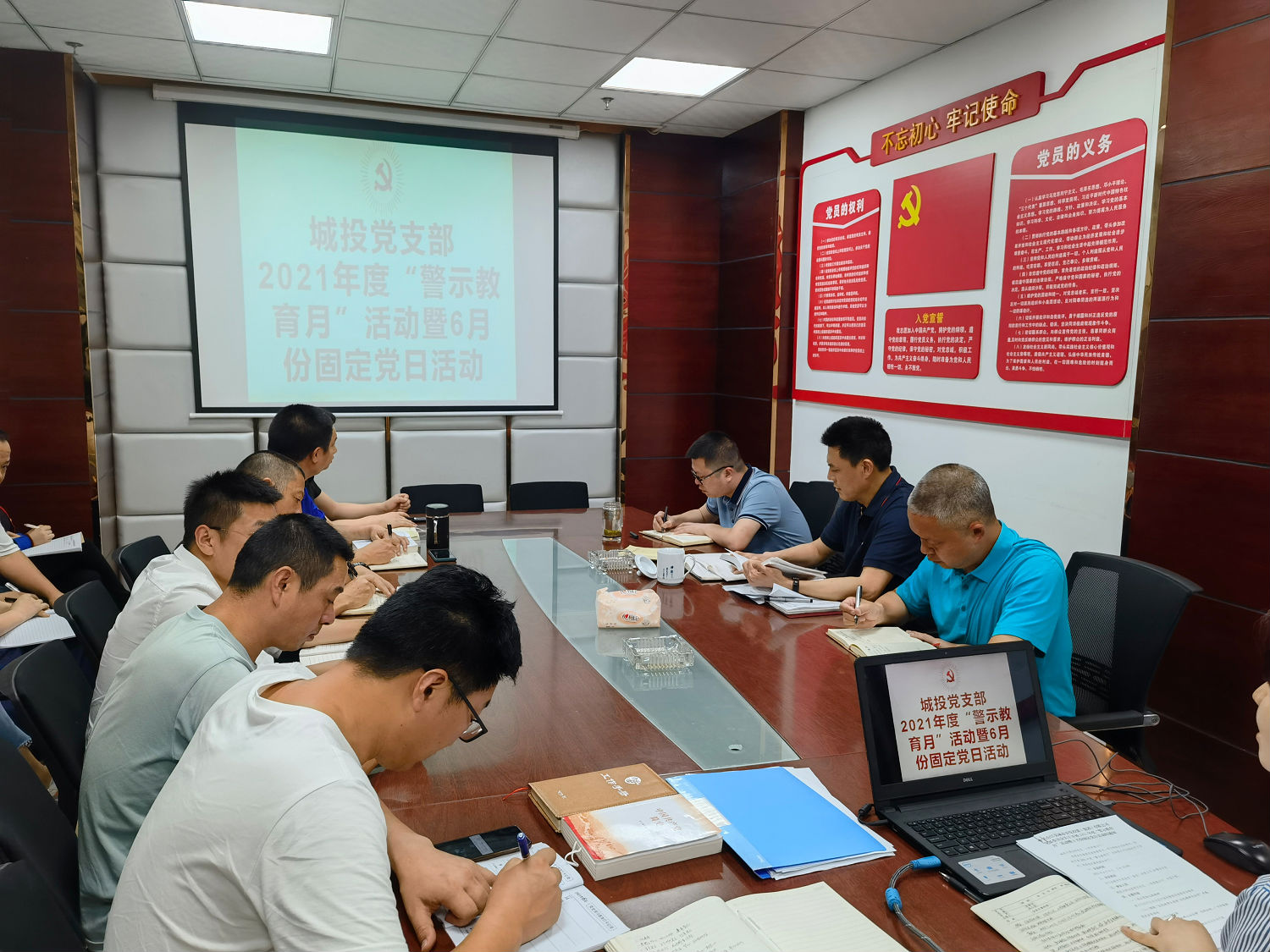 2021年6月9日下午,城投黨支部組織全體黨員同志、中層及以上領(lǐng)導干部、入黨積極分子等重點崗位人員開展2021年度“ 警示教育月 ”活動暨6月份固定黨日活動。