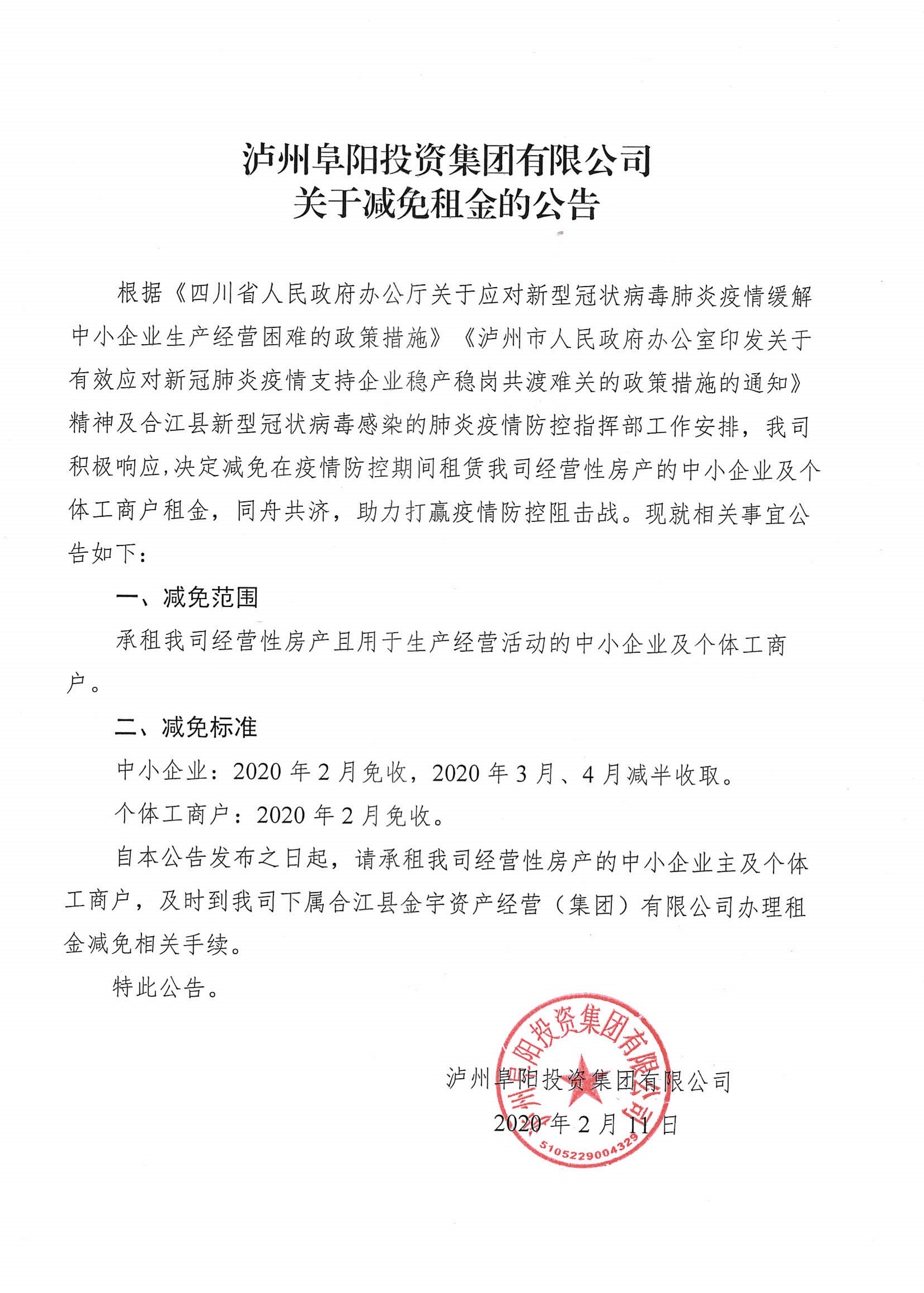 關于減免租金的公告