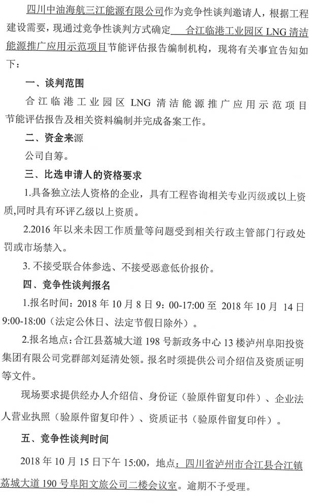 合江臨港工業(yè)園區(qū)LNG清潔能源推廣應(yīng)用示范項(xiàng)目節(jié)能評估報(bào)告編制單位競爭性談判公告.doc