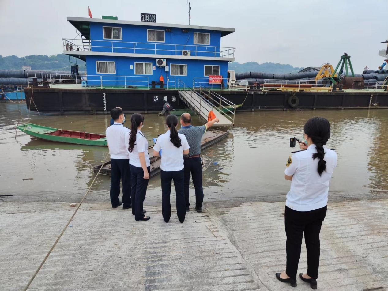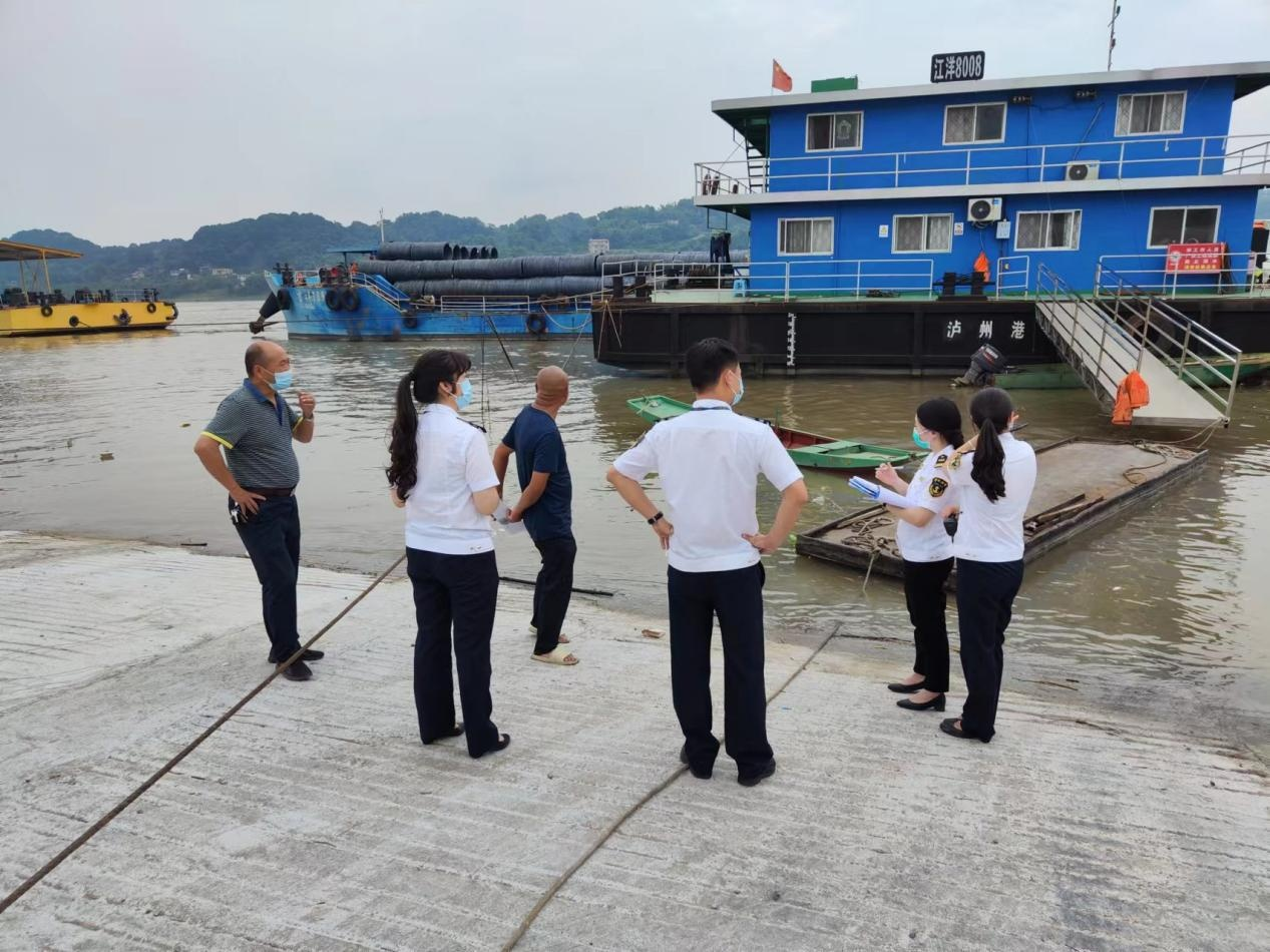 2022 年 6 月 10 日 , 瀘 州 市 交 通 運 輸 綜 合 行 政 執(zhí) 法 支 隊 六大隊到國瑞港埠民用碼頭檢查安全環(huán)保工作。